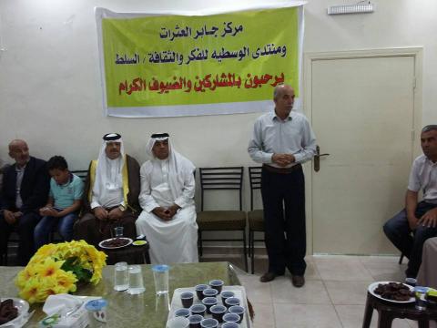 نظم منتدى الوسطيه للفكر والثقافه /السلط ومركز جابر العثرات حفل استقبال لحجاج بيت الله الحرام لهذا العام واهاليهم تكريما وبهجة بعودتهم سالمين إلى أرض الوطن يوم السبت الموافق 3/10/2015 في قاعة مركز جابر العثرات ورحب د. علي ابو رمان رئيس المركز واحيا عربيات رئيس المنتدى والحضور بالحجاج .