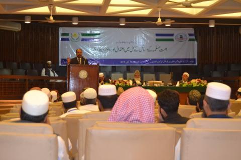هذا وقد افتتح الدورة معالي الأستاذ الدكتور أحمد يوسف الدريويش ، رئيس الجامعة الإسلامية العالمية بإسلام آباد بحضور سعادة الأستاذ الدكتور سهيل حسن ، مدير أكاديمية الدعوة، وسعادة الدكتور عصمت الله مدير قسم الفقه بمجمع البحوث الإسلامية، وسعادة الدكتور حبيب الرحمن مدير قسم التربية بأكاديمية الشريعة، وعدد من الشخصيات الأكاديمية والإسلامية، وقد ركّز في افتتاحيته على مقاصد إقامة الدورة ومدى اسهامها في ترسيخ منهج الوسطية وايجاد الحلول الناجعة لكل التحديات التي تواجه الأمة الإسلامية، وبدوره ثمّنَ الدريويش الجهود التي بُذلت وتُبذل لإقامة هذه الدورة والدورات المشابهة لتأكيد أهمية هذا المنهج الوسطي في شيوع السماحة والاعتدال ومواجهة التحديات بكفاءة واقتدار كما حثّ جموع الحاضرين والمشاركين في الدورة على حمل هذه الأمانة ونشرها في كل أرجاء البلاد بعد التسلح بالعلم والمعرفة والإلمام بالحكمة في كيفية مواجهة كل مُشكل.