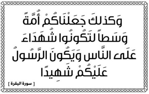 وَكَذَلِكَ جَعَلْنَاكُمْ أُمَّةً وَسَطاً لِّتَكُونُواْ شُهَدَاء عَلَى النَّاسِ وَيَكُونَ الرَّسُولُ عَلَيْكُمْ شَهِيداً