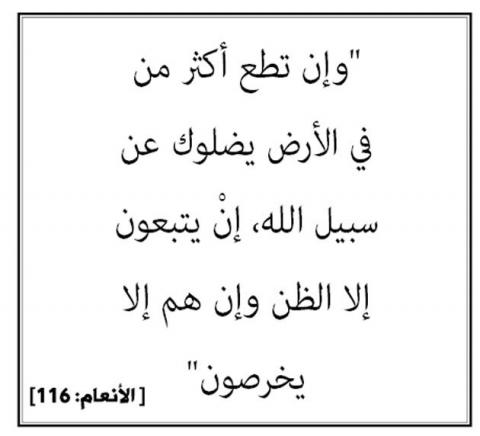 • “وإن تطع أكثر من في الأرض يضلوك عن سبيل الله”