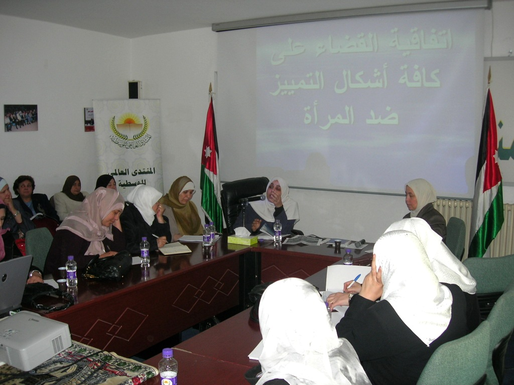 تحدثت فيها السيدة ميسون دراوشة حيث قامت بتوضيح العنوان الرئيسي لإتفاقية سيداو وهو المطابقة التامة بين الرجل والمرأة، تحدثت عن تاريخ الإتفاقية التي بنيت منذ عام 1973م وأنتهت عام 1979م وأخذت الطابع الرسمي عام 1981م عندما صادقت عليها (50) دولة.