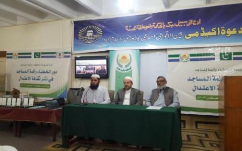 نظم فرع المنتدى العالمي للوسطية بباكستان دورة تدريبية للخطباء وأئمة المساجد بعنوان "دور الخطباء وأئمة المساجد في نشر ثقافة الاعتدال"والتي عقدها بالتعاون مع أكاديمية الدعوة بالجامعة الإسلامية العالمية بإسلام آباد يوم السبت الموافق 19 أغسطس 2017م شارك في الدورة خطباء المساجد والأئمة والدعاة ومعلمي التربية الإسلامية من أقاليم ومدن باكستان كافةً والذين توافدوا ملبيين دعوة المنتدى العالمي للمشاركة في فعاليات الدورة لأهميتها المحورية في بناء شخصية الدعاة والمربين لمواجهة التحديات وسُبل حلها.