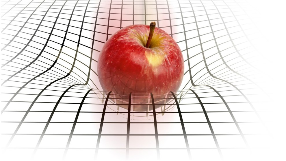 قد يكون هذا جواب افضل للسؤال الأصلي “لماذا وقعت التفاحة؟” لكنه ليس الجواب النهائي لاننا لم نفسر سبب وجود كتلة للمادة و لم نفسر ألية العمل التي ينتج عنها انحناء النسيج المكاني.