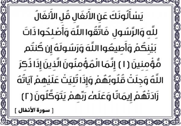 هي سورة الأنفال، سورة بدر، حيث انتصار الفئة المستضعفة على الفئة المستكبرة، وهو أول لقاء بين جيشي الإيمان والكفر، مع أن المؤمنين ما خرجوا في الأصل للحرب، إنما للقاء قافلة تجارية، ولكن مشيئة الله أن يكون اللقاء الذي تكرهه النفوس: “وتودون أن غير ذات الشوكة تكون لكم”، ولو كان الأمر غنيمة عاجلة لحصّلوها، وربما اتهمهم أعداؤهم حينها بأنهم قاطعوا طرق، فشاء الله لهم ما هو أسمى، حيث هزيمة الباطل المنتفخ الذي تحدث عنه للتو أبو جهل وقد علم عن نجاة القافلة، فكان بإمكانهم الرجوع، فأبى إلا أن يرد بدرا، لينحروا الإبل، ويشربوا الخمر، وتعزف القيان، فما تزال العرب تسمع بهم وتهابهم، فأبى الله إلا إذلالهم، وقتل صناديدهم.